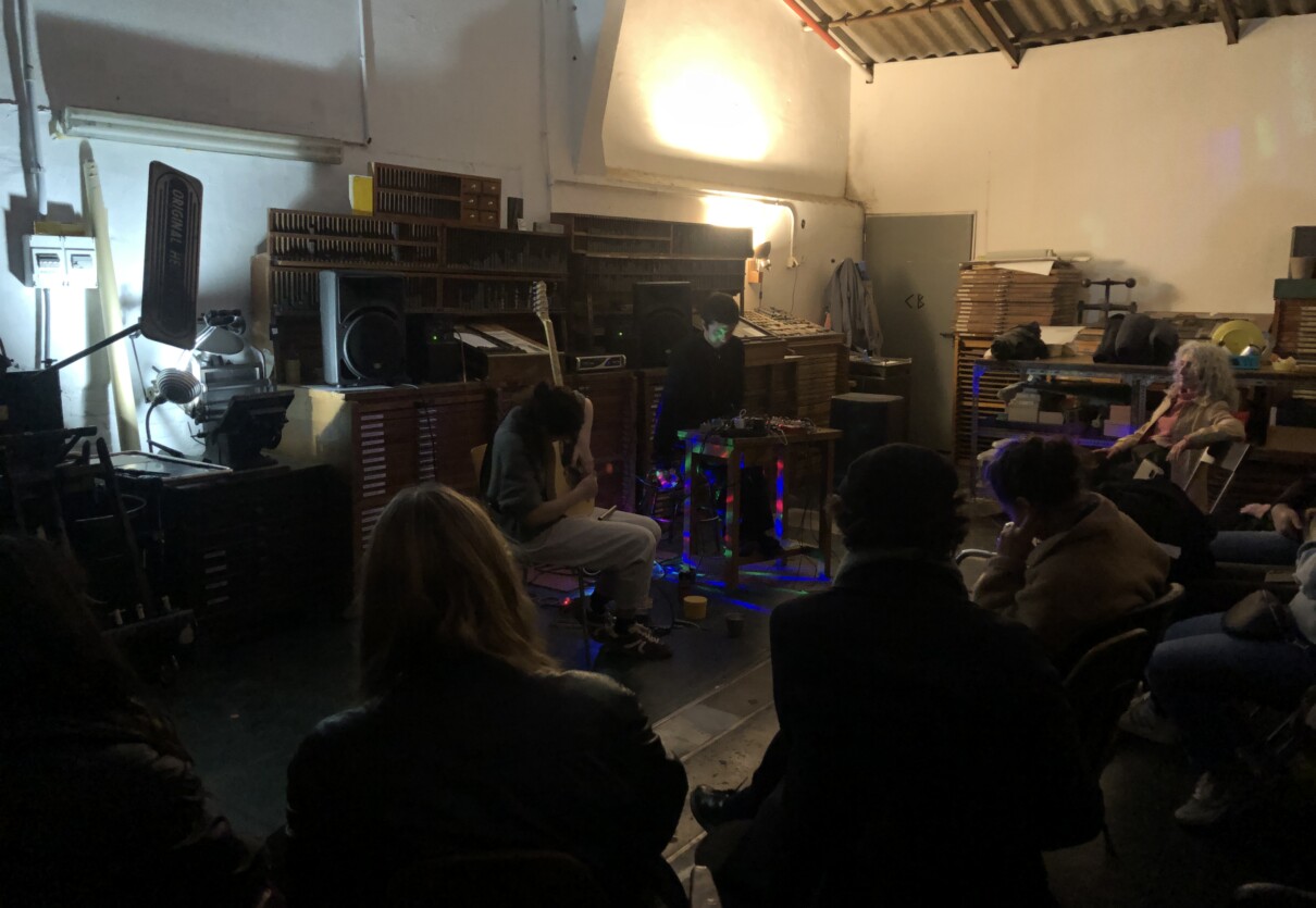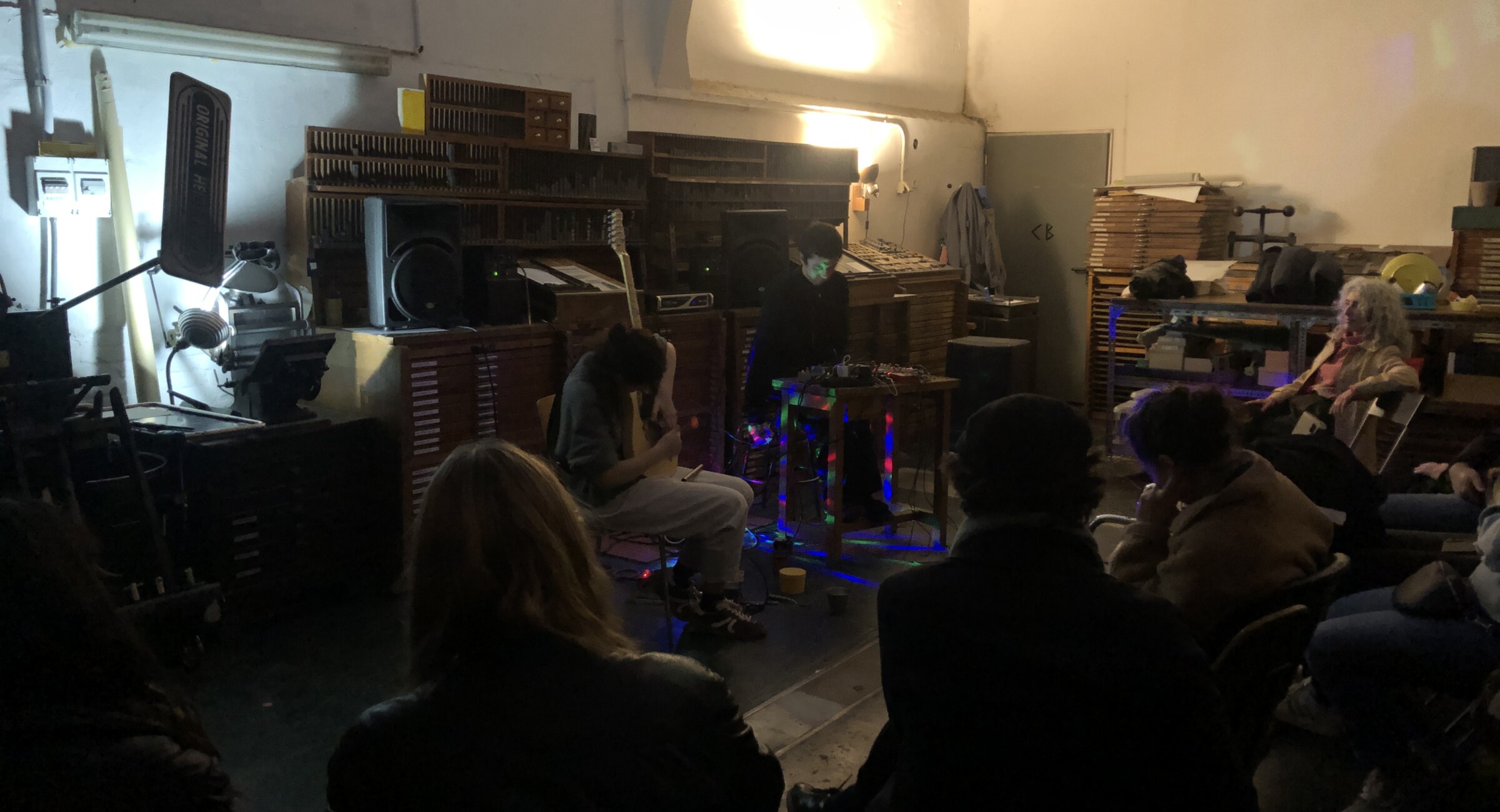 Performance on February 20, inside Pristine Folds with Amidea Clotet on guitar and Corprès with electronics.