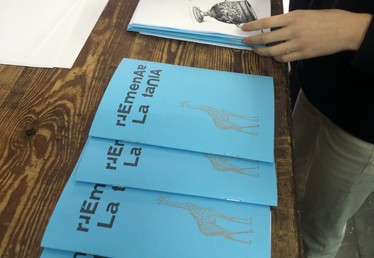 «Mesa revuelta» es un juego antiguo que forma parte de la memoria de la sede de la Fundación, y es que la nieta de Francesc Simón ya jugaba cuando visitaba a su abuelo en la editorial que antiguamente ocupaba el edificio. En esta ocasión, de la mano de L’Automàtica, se propuso recuperar este juego que comienza con una mesa llena de imágenes y tipografías extraídas de las antiguas publicaciones de la editorial Montaner y Simón. Esta segunda sesión la dedicamos a la autoedición y a los procesos editoriales, en la que entre todas elaboramos un fanzine.