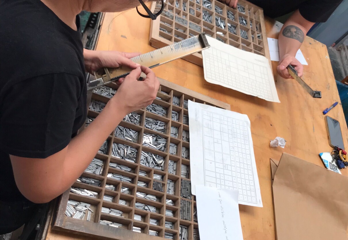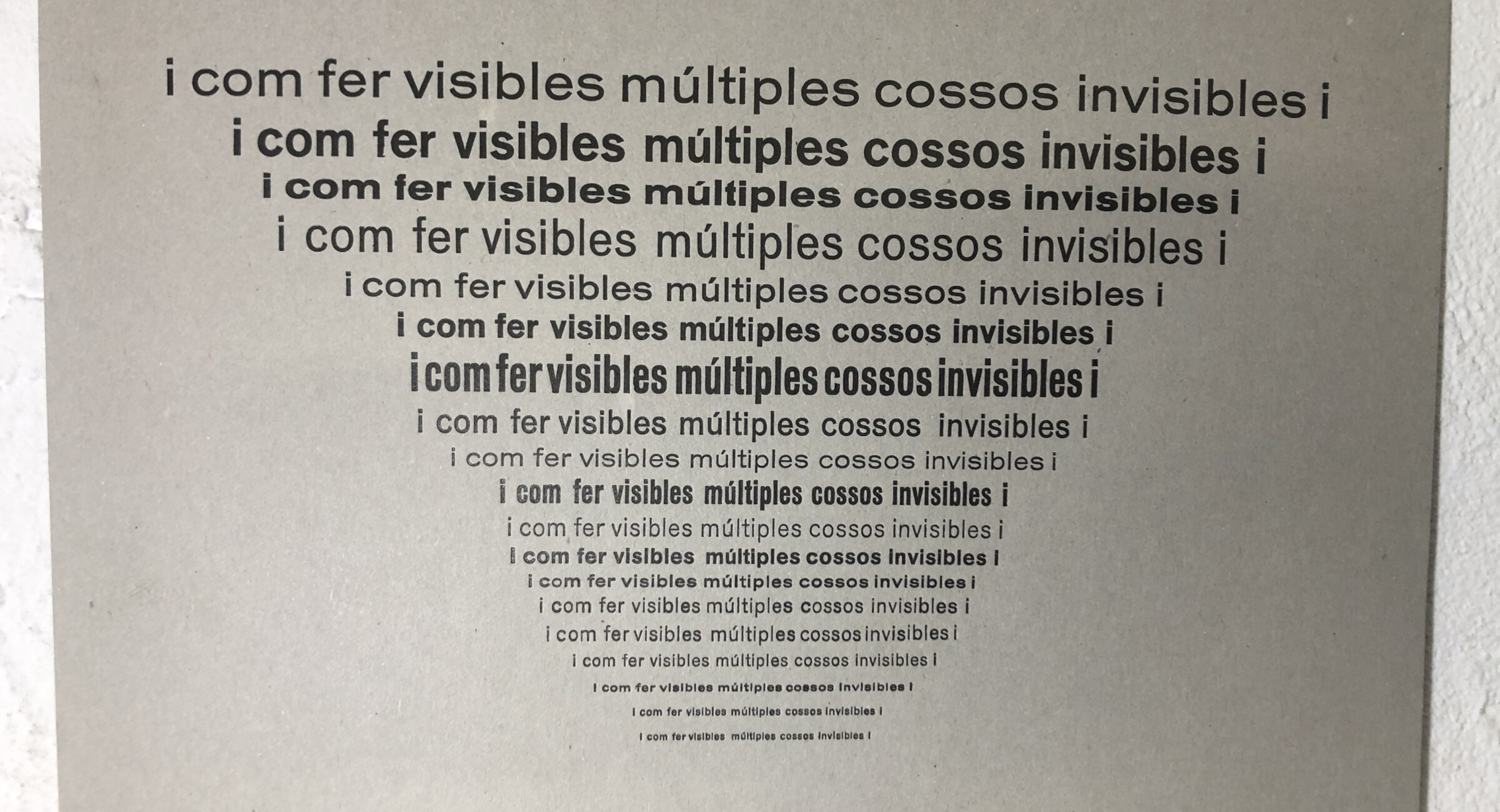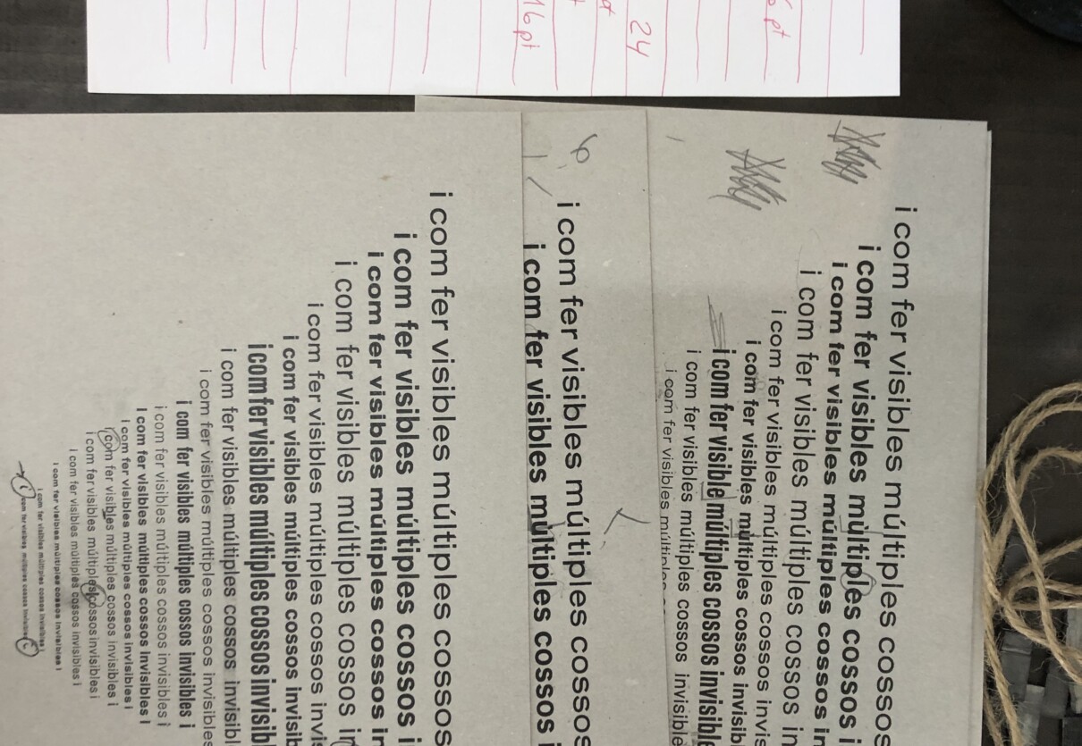 En este taller se hizo una pieza en torno a los cuerpos invisibilizados y diversos desde una óptica feminista, compuesto a modo de colofón barroco o estructura visual, repitiendo la misma frase en todos los cuerpos de letra disponibles de una misma familia, la Venus.