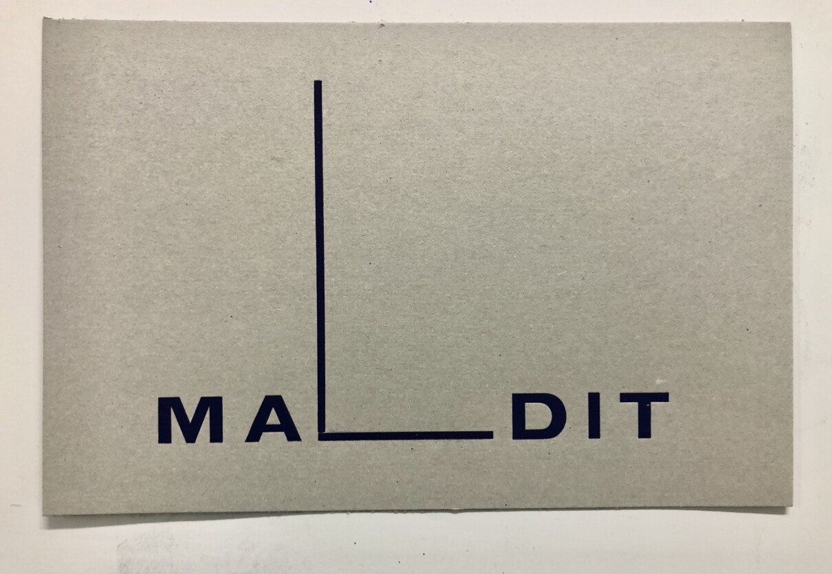 En este taller la pieza resultante se movía a medio camino entre la ilustración y el texto, como una viñeta en la que lo que se lee y lo que se ve están relacionados. Partiendo de la forma de una mano, se dibujó un dedo que se combinaba con el equívoco verbal de lo que está mal dicho, en catalán «mal dit». Dit en catalán significa tanto «dicho» como «dedo».